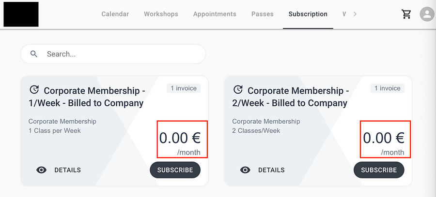 If a regular user wants to buy a subscription, they are redirected to the subscription page, as seen below:
