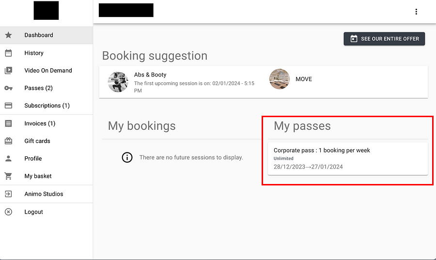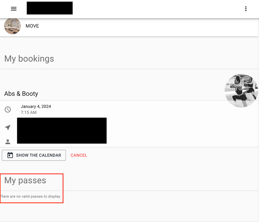 On image 3, I am highlighting the fact that I do not have any subscriptions or passes available on my account, yet I was still able to book a sports class by using the payment pack ID of another account.