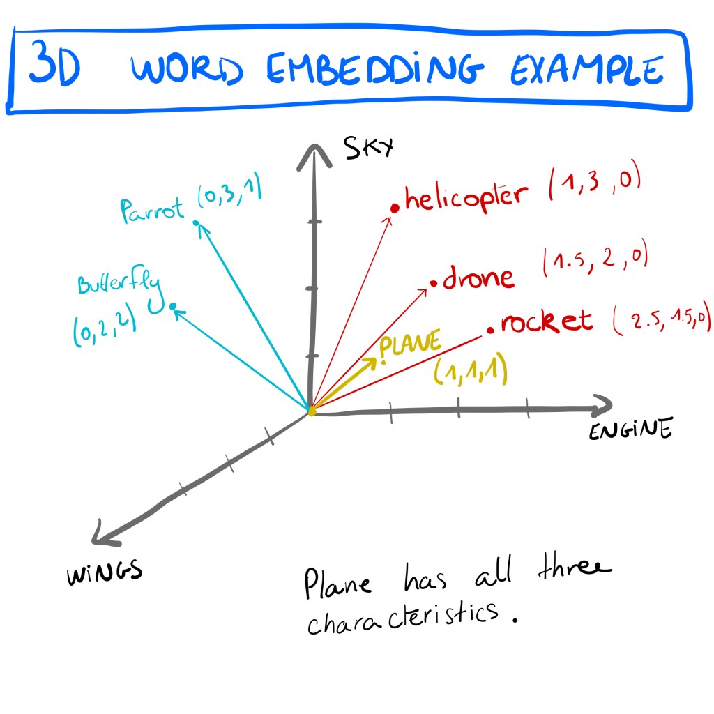 For example, the word “cat” can have coordinates that will place it in a high-dimensional space with the following categories: Living being, feline, human, pet, gender, fruit, verb, noun, etc.