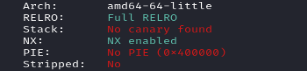 If we run checksec on the binary, we notice there is NO RELRO, NO PIE & No stack canaries.