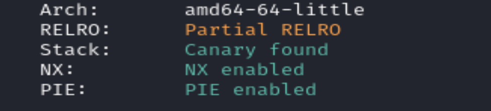 With PIE enabled, the entire binary is compiled in a way that allows it to be loaded at a random base address in memory every time it runs. This randomization occurs due to ASLR (Address Space Layout Randomization). Without PIE, the binary must be loaded in a fixed location in memory everytime it’s run. In this case, the binary is not compiled with PIE. However, libc is compiled with Position-Independent Code (PIC).
