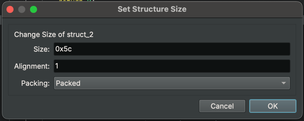 In struct_2, we know that we have a uint32_t at offset 0x58, so adding 4 bytes (sizeof(uint32_t)) we have a struct size of 0x5c. We don’t specifically know the actual size of struct_2, but for now we can guess that it will be 0x5c, and we can always adjust it later on if needed.